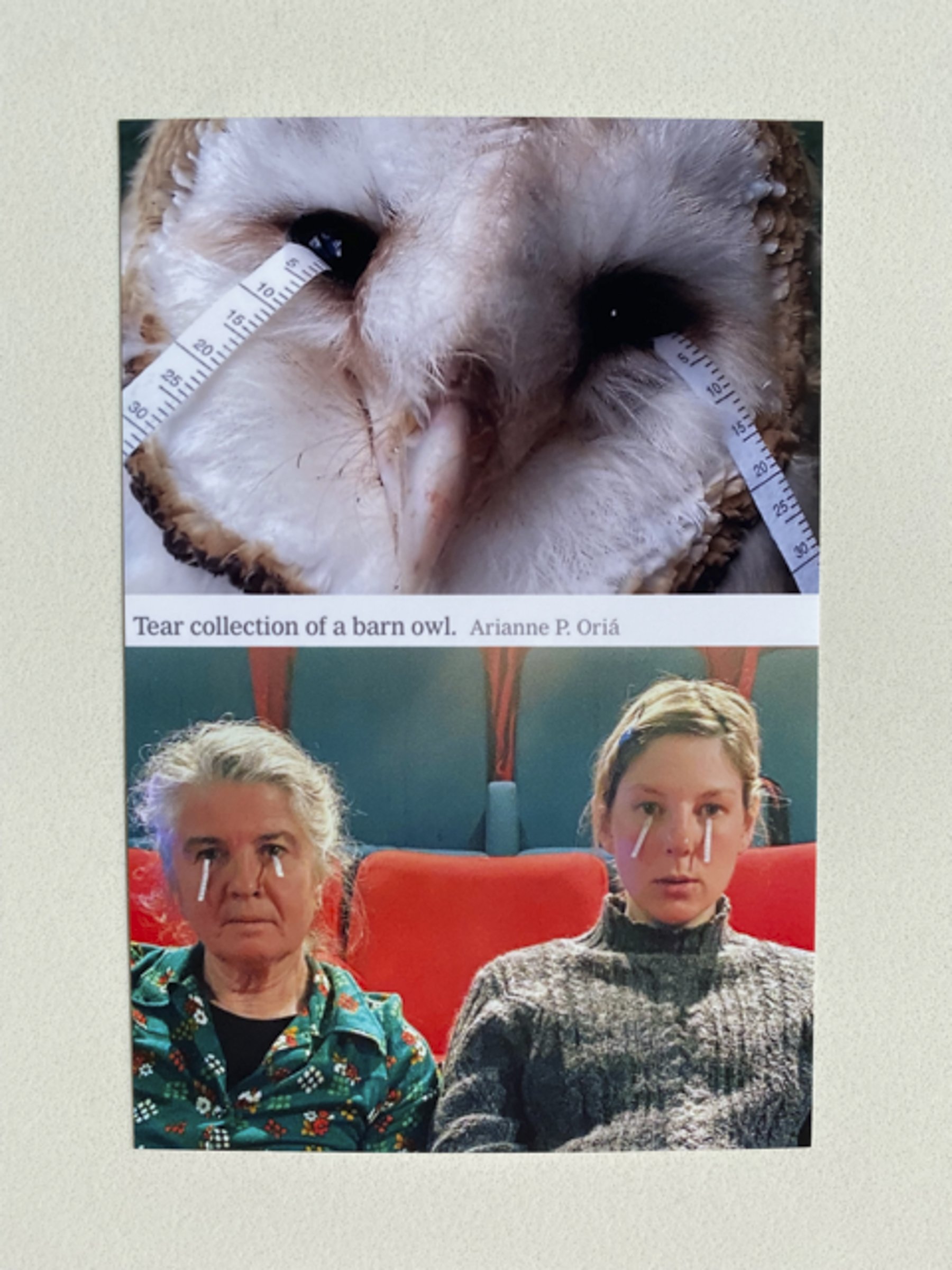 To better understand scientific perspective the audience is invited to micro and macro views of the lacrimal glands that produce tears. There is also documentation of an exploration of scientific tools and methodology used to capture, measure and analyse the volume of tears cried by audience members, during a film screening.
