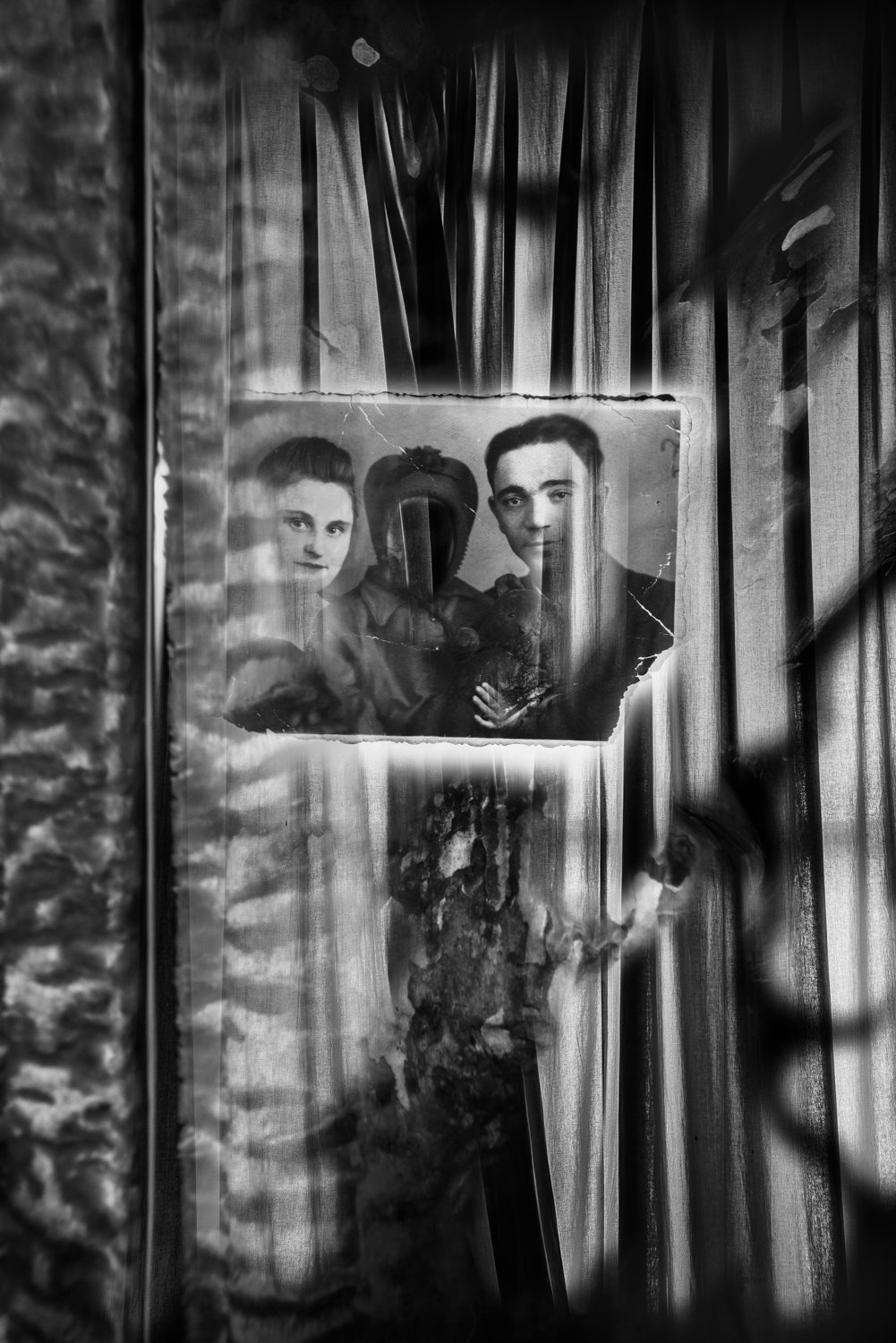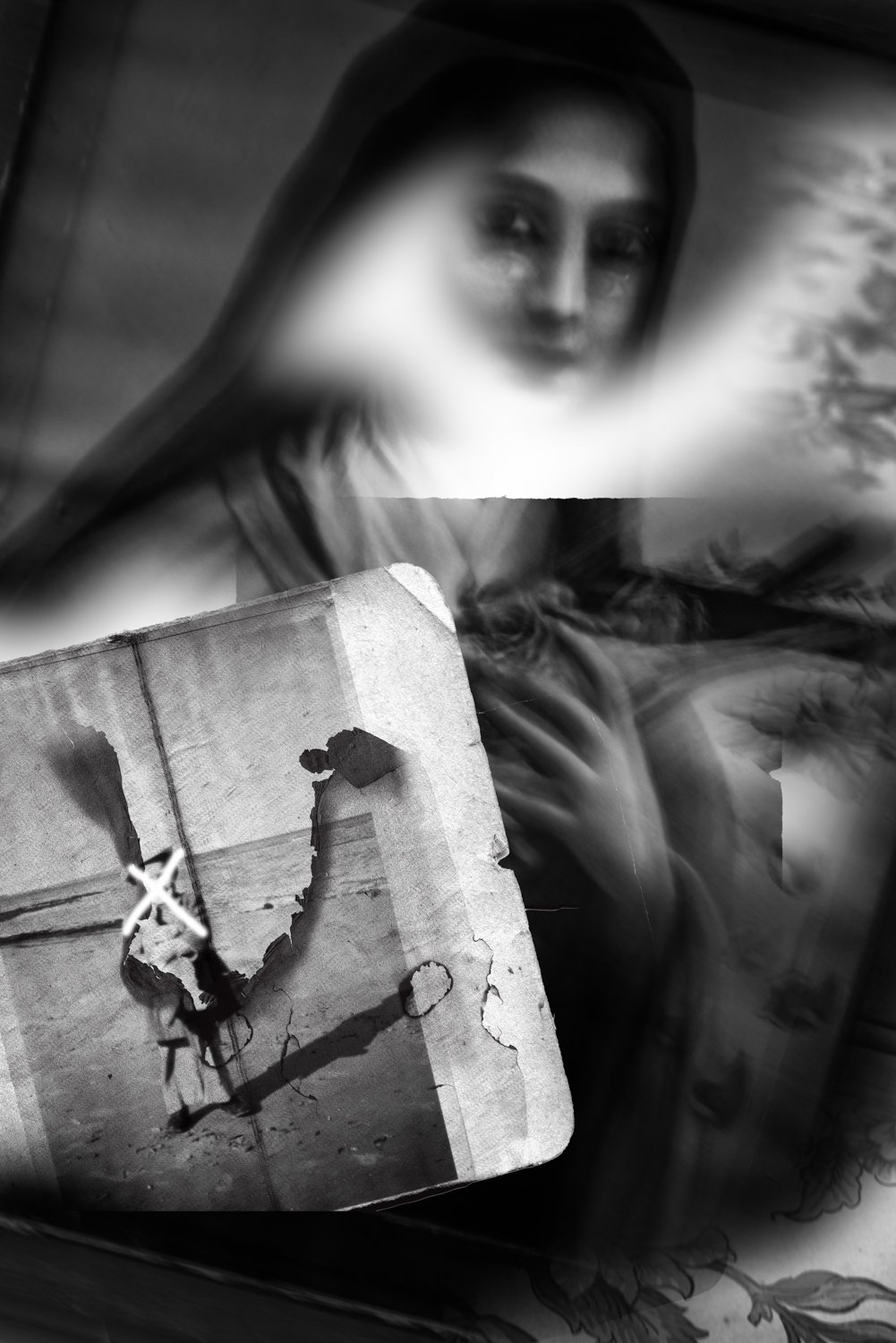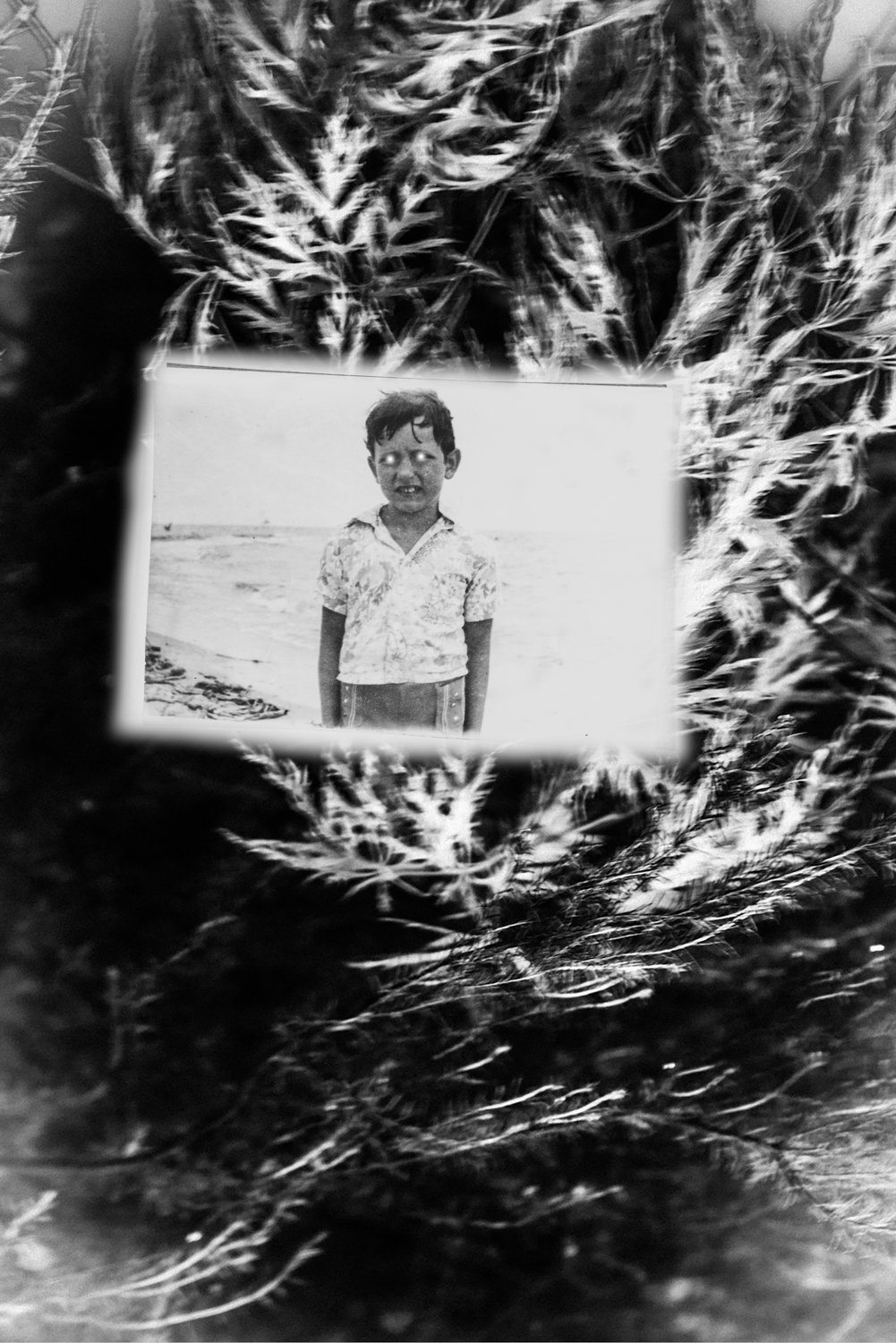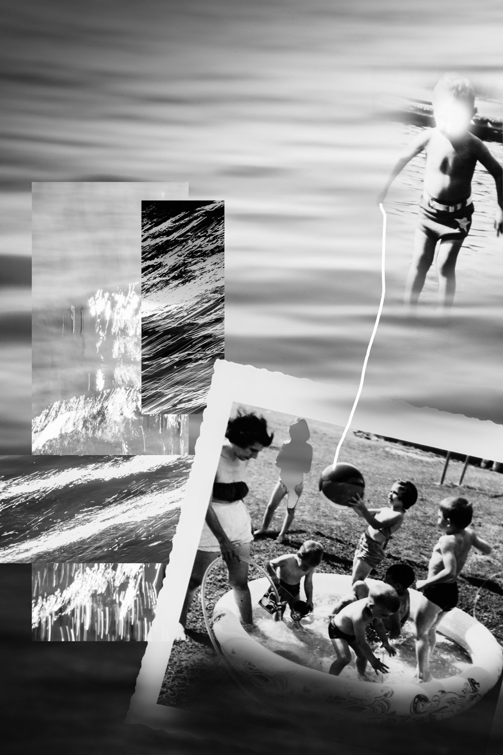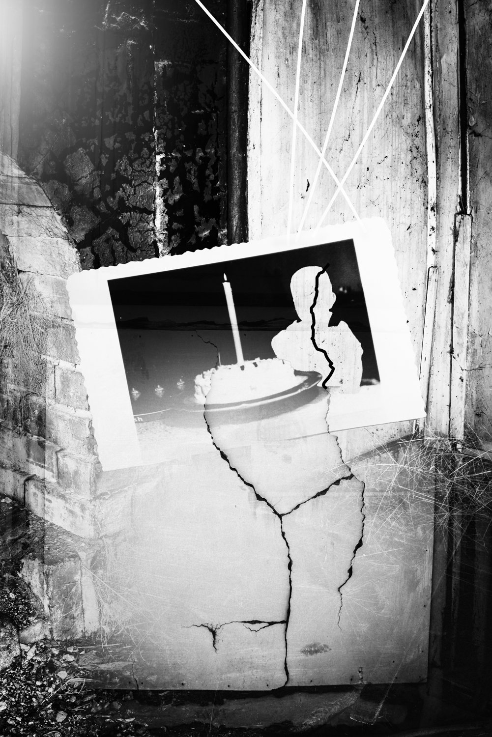 The pictures here are sourced vintage photographs of unknown children and families painstakingly blended into my own photographic imagery to create a sense of a nostalgic, unspoken mystery, perhaps a melancholy. A map without directions. It is like something you can’t quite put your finger on but is somehow unsettling.